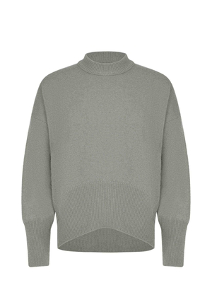 Maglia Atomo Factory realizzata in misto lana e cashmere di colore Salvia. Colletto a costine. Maniche lunghe. Polsini e fondo a costine.80% lana 20% cashmere Made in Italy
