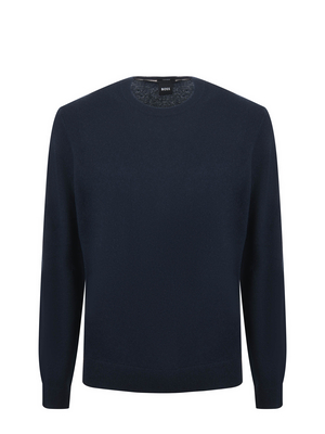 Maglia Boss in cashmere Blu scuro. Girocollo. Manica lunga. Polsi e fondo e a costine. Misura in foto M100% cashmere