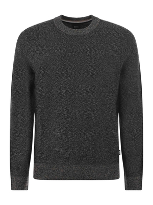 Maglia Boss in misto lana Nero/Beige effetto melange. Girocollo a costine. Manica lunga. Polsi e fondo a costine. Misura in foto S75% lana vergine, 25% cotone