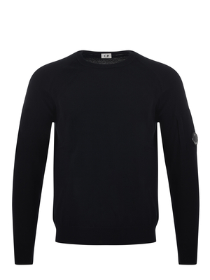 Maglia C.P. Company in filato di lana extrafine Nero. Girocollo. Maniche raglan lunghe. Tasca sulla manica sinistra con zip e lente. Polsi e fondo a coste. 88% lana vergine, 12% poliestere Misura in foto M
