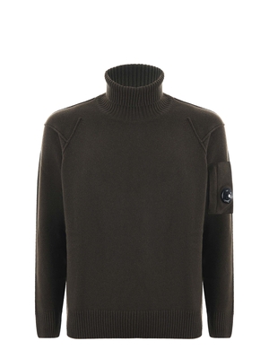 Maglia C.P. Company in misto lana di colore Verde Militare. Collo alto a costine. Manche lunghe. Tasca sulla manica sinistra con zip e lente. Polsi e fondo a costine. Regular fit. 80% Lana, 20% Nylon Misura in foto M