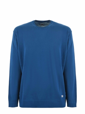 Maglia C.P. Company in filo di cotone Blu ottanio. Girocollo. Manica lunga. Cuciture a rilievo. Logo frontale.Misura in foto 48100% cotone