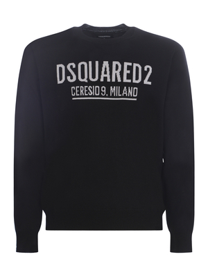 Maglia Dsquared2 in lana vergine di colore Nero. Girocollo a costine. Lettering logo "Dsquared2 Ceresio9, Milano" a contrasto Bianco davanti. Polsi e fondo a costine. Regular fit.100% Lana VergineMade in Italy