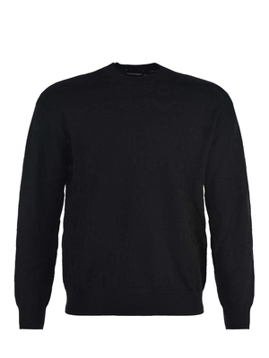 Maglia Emporio Armani in lana vergine Nero. Girocollo. Maniche lunghe. Intarsio logo lettering allover.Misura in foto M100% lana vergine