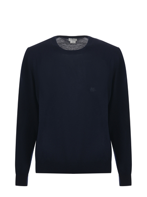 Maglia Etro in filato leggero di lana Blu scuro. Girocollo. Maniche lunghe. Polsi e fondo a costine. Logo frontale ricamato in tono. Regular fit. Misura in foto M100% lana