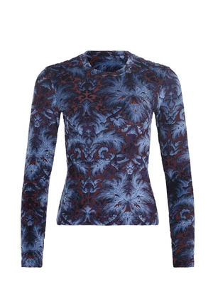 Maglia Etro realizzata in misto viscosa Multicolor.Girocollo. Maniche lunghe.Fondo di colore Burgundy.Motivo a contrasto di colore Blu/Celeste in velluto a rilievo.96% viscosa 4% elasteneMade in Italy