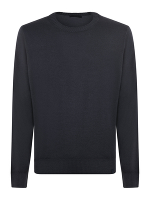 Maglia Fay in lana vergine rasata color Antracite. Tinto in capo. Aree volutamente scolorite. Girocollo a coste. Manica lunga. Polsi e fondo a costine.Misura in foto 48100% lana vergine