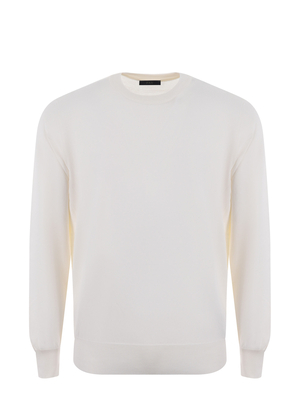 Maglia Fay in filo di cotone Panna. Manica lunga. Girocollo a costine. Polsi e fondo a costine. Logo in tono ricamato davanti.Misura in foto 48100% cotone