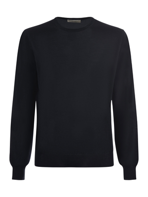 Maglia Filippo De Laurentiis in filato leggero di lana merinos Blu scuro. Girocollo a costine. Maniche lunghe. Polsi e fondo a costine. Misura in foto 50100% superfine 120's lana merinos