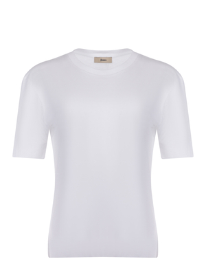 Maglia Herno realizzata in misto cotone di colore Bianco. Girocollo a costine. Maniche corte con fondo a costine. Placchetta logo sul fondo in metallo Argento e sul retro del girocollo.67% lyocell 33% cotone