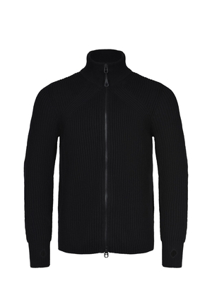 Maglia JG1 realizzata in cotone di colore Nero.A coste. Collo alto. Chiusura con zip a doppio cursore. Maniche lunghe. Foro per pollice.100% cotone