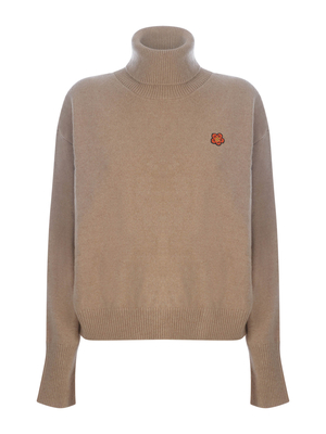 Maglia Kenzo in lana di colore Cammello. Collo alto. Maniche lunghe. Logo "Flower" a contrasto sul petto. Polsi e fondo a costine. 100% LanaMade in Bulgaria