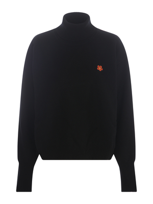 Maglia Kenzo in lana di colore Nero. Collo alto. Maniche lunghe. Logo "Flower" a contrasto sul petto. Polsi e fondo a costine. 100% LanaMade in Bulgaria