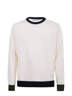 Maglia Manuel Ritz in misto lana Panna. Girocollo a contrasto. Manica lunga. Polsi e fondo a contrasto. Logo ricamato sul fondo.50% lana, 50% fibra acrilica