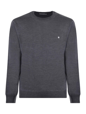 Maglia Manuel Ritz in lana Grigio scuro. Girocollo. Manica lunga. Polsi e fondo a costine. Logo ricamato davanti.100% lana