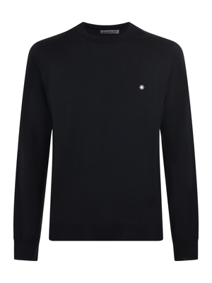 Maglia Manuel Ritz in lana Nero. Girocollo. Manica lunga. Polsi e fondo a costine. Logo ricamato davanti.100% lana