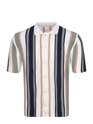Maglia Manuel Ritz realizzata in cotone di colore Off white. Motivo a righe. Colletto classico. Maniche corte. Chiusura con bottoni sul davanti. Logo ricamato sul fondo a contrasto.100% cotone Made in Italy