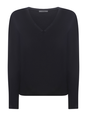 Maglia Max Mara Leisure "Cavour" in lana vergine di colore Blu. Scollo a punta. Maniche lunghe. Giromanica leggermente basso. Regular fit.100% Lana VergineMade in Italy