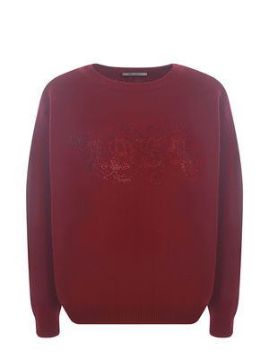 Maglia Max Mara " Nias" realizzata in lana e cashmere di colore Rosso. Girocollo a costine. Maniche lunghe. Giromanica sceso. Logo "1951", ricamo in strass. Polsi e fondo a costine. Fit leggermente oversize. 70% Lana, 30% Cashmere Made in Italy