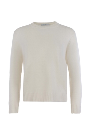 Maglia Max Mara "Viglio" realizzata in cashmere di colore Crema. Girocollo a costine. Maniche lunghe. Logo "M" ricamato di lato. Polsi e fondo a costine. 100% CashmereMade in Italy