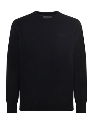 Maglia MC2 Saint Barth in lana Nera. Logo frontale ricamato in tono sul petto. Girocollo. Manica lunga. Misura in foto M100% lana