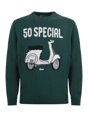 Maglia MC2 Saint Barth in misto lana e cashmere Verde scuro. Intarsio frontale "50 special". Girocollo. Manica lunga. Misura in foto M35% lana, 30% viscosa, 20% cashmere, 15% poliammide