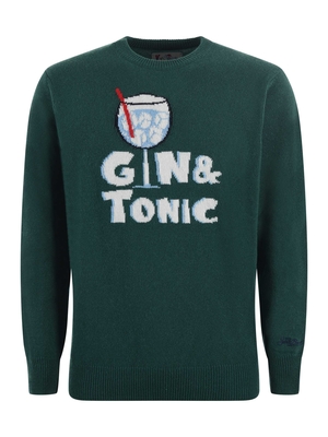 Maglia MC2 Saint Barth in misto lana e cashmere Verde scuro. Intarsio frontale "gin tonic". Girocollo. Manica lunga. Misura in foto M35% lana, 30% viscosa, 20% cashmere, 15% poliammide