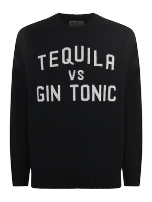 Maglia MC2 Saint Barth in misto lana e cashmere Nero. Intarsio frontale "tequila vs gin tonic". Girocollo. Manica lunga. Misura in foto M35% lana, 30% viscosa, 20% cashmere, 15% poliammide