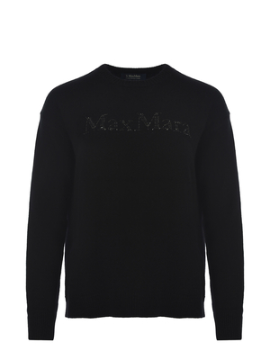 Maglia 'S Max Mara " Kassel" realizzato in filato di lana e cashmere di colore Nero. Girocollo a costine. Lettering logo " Max Mara" con strass termosaldati. Maniche lunghe. Giromanica sceso. Polsi e fondo a costine. Over fit.80% Lana, 20% Cashmere Made in Italy