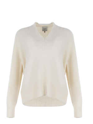Maglioncino Alysi in misto alpaca Off white.Scollo a V a coste. Polsini e fondo a coste. Vestibilità Regular Fit.55% alpaca 27% poliammide 13% lana merino 5% elasteneMade in Italy