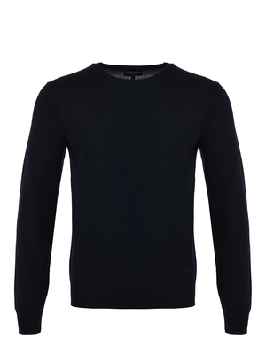 Maglioncino Emporio Armani in filato leggero di lana Blu scuro. Girocollo. Manica lunga. Polsi e fondo a costine. Regular fit. Misura in foto M100% lana ...