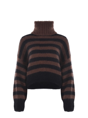 Maglione Alysi in misto mohair a righe marrone e nero. Collo alto a coste. Fondo e polsini a coste. Spalle morbide. Vestibilità ampia 54% mohair 45% poliammide 2% elastene