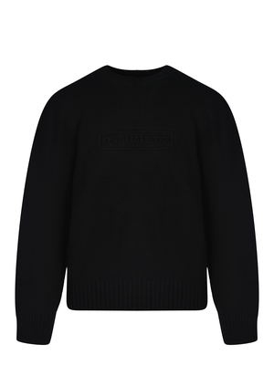 Maglione Dsquared2 realizzato in cotone tricot di colore Nero. Girocollo a costine. Maniche lunghe. Polsi e fondo a costine. Lettering "Dsquared2" in rilievo, lavotato jacquard davanti.Regular fit. 100% Cotone