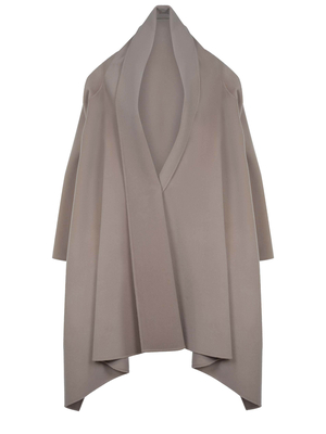 Mantella Alberta Ferretti realizzata in misto lana e cashmere realizzata di colore Sabbia. Aperto sul davanti. Maniche lunghe ampie. Fondo asimmetrico.90% lana 10% cashmere ...