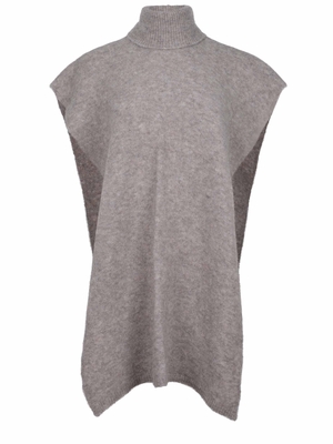 Mantella Alysi realizzata in misto alpaca di colore Tortora. Collo alto a coste. Senza maniche.45% alpaca 28% poliammide 21% lana vergine 3% elastene Made in Italy