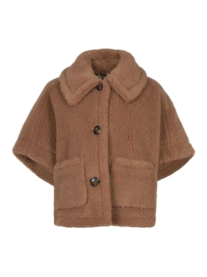 Mantella Max Mara " Newtwrzo 1" realizzata in misto alpaca e lana di colore Cammello. Ampio colletto a camicia. Maniche corte a kimono. Chiusura frontale con tre bottoni a vista. Tasche applicate sul davanti. Fodera in viscosa.62% alpaca 26% lana vergine 12% seta Made in Italy