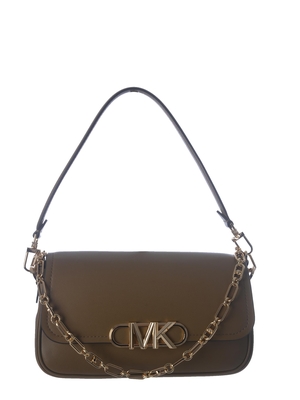 Borsa Michael Kors in pelle Cuoio. Patta con logo "MK" in metallo Dorato. Chiusura push-lock. Doppio manico. I in pelle. II a catena, in metallo Dorato. Tasca interna con zip. Dettagli in metallo Dorato. Fodera 100% Poliestere 100% Pelle Made in Bangladesh