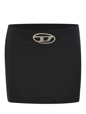 Minigonna Diesel "O-Dixy" realizzata in twill stretch di lana di colore Nero. Ampia fascia in vita. Logo " Oval D" in metallo, taglio cut-out davanti. Aderente. Chiusura con zip, laterale nascosta. Slim fit.53% Poliestere, 43% Lana, 4% Elastan