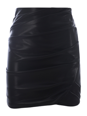 Minigonna Philosophy realizzata in tessuto spalmato di colore Nero. Vita alta. Drappeggiata. Chiusura con zip, di lato. Regular fit 100% Poliestere Made in Ungheria