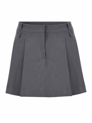 Minigonna Pinko " Giudici" realizzata in tessuto fluido di misto viscosa stretch di colore Grigio. Motivo a pieghe. Passanti per cintura. Tasche a filo laterali. Chiusura con gancio e zip, nascosto. Tasche a filo sul retro. Foderata. Fodera 67% Acetato, 33% Poliestere 72% Poliestere, 23% Viscosa, 5% Elastan