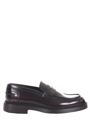Mocassini Doucal's in pelle spazzolata Bordeau. Mascherina frontale. Tacco 30 mm in gomma. Suola in gomma.100% pelle