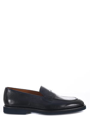 Mocassini Doucal's in pelle Blu scuro. Mascherina frontale. Tacco 25 mm in gomma.100% pelle