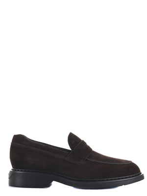 Mocassini Hogan in camoscio Marrone. Mascherina frontale. Logo frontale impresso. Tacco 30 mm in gomma. Soletta in memory foam. Suola in gomma.Misura in foto 6100% pelle