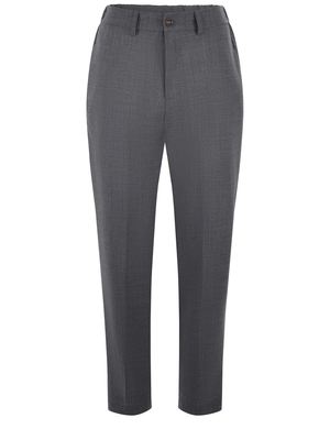 Pantalone Solotre in misto lana Grigio antracite. Passanti in vita per cintura. Chiusura con zip e bottone. Tasche laterali a filo. Tasca sul retro con bottone. Elastico sul retro in vita.53%poliestere 43%lana vergine 4%elastene Made in Italy