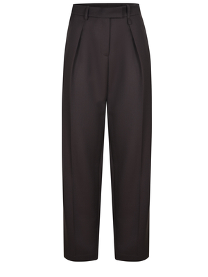 Pantaloni Alysi realizzati in misto lana di colore Cioccolato. Chiusura con zip gancetti e bottone. Passanti per cintura. Pences sul davanti. Tasche laterali. Taschino con patta sul retro.55% poliestere 45% lana vergine Made in Italy