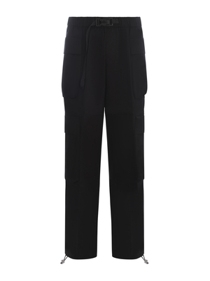 Pantaloni Bonsai in cotone di colore Nero. Elastico in vita. Cintura regolabile. Non ha chiusure. Tasche cargo, con patta di lato. Fondo con coulisse. 100% Cotone Made in Italy