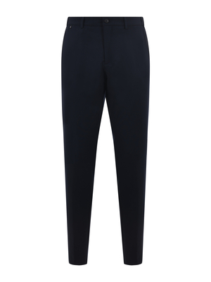 Pantaloni Boss in fresco di lana Blu scuro. Elastico al punto vita e coulisse. Tasche america. Tasche a filo con bottone sul retro. Chiusura con zip e gancio. Slim fit. Misura in foto 46100% lana vergine ...