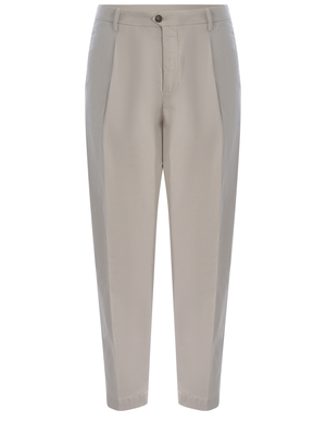 Pantaloni Briglia realizzati in cotone stretch di colore Mastice. Passanti per cintura. Pience davanti. Tasche america. Chiusura con bottone e zip. Tasche a filo con bottone sul retro.97% Cotone, 3%ElastanMade in Italy