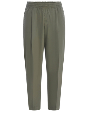 Pantaloni Briglia realizzati in cotone di colore Verde Militare. Elastico in vita. Non ha chiusure. Tasche a filo laterali. Tasca a filo posteriore.100% CotoneMade in Italy