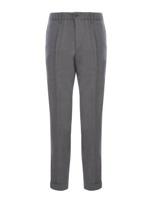 Pantaloni Briglia in lana vergine stretch di colore Grigio Chiaro. Elastico in vita. Passanti per cintura. Chiusura con bottone e zip. Pience davanti. Tasche laterali. Tasche a filo con bottone sul retro.99% Lana Vergine, 1%ElastanMade in Italy